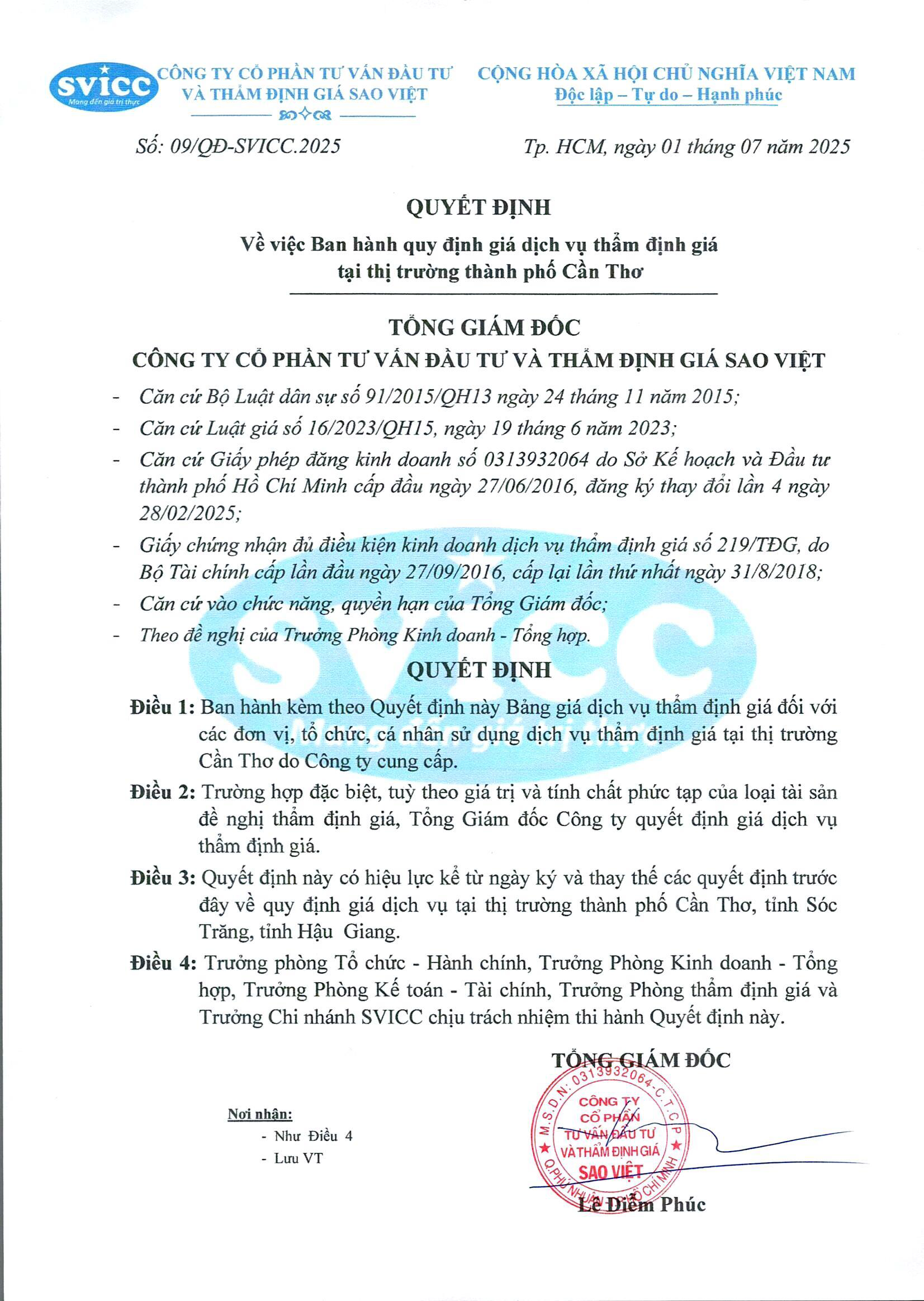 CÔNG TY CỔ PHẦN TƯ VẤN ĐẦU TƯ VÀ THẨM ĐỊNH GIÁ SAO VIỆT